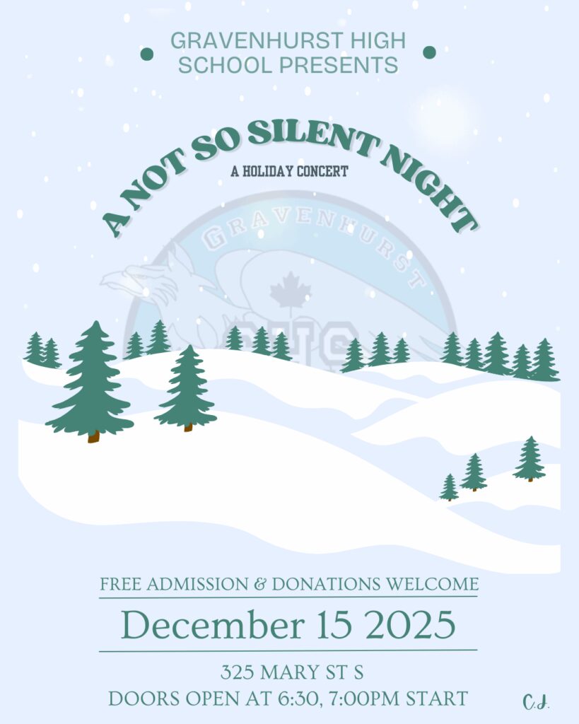 Please join us in the Gravenhurst High School cafeteria on Monday December 15th, for a Christmas Concert.